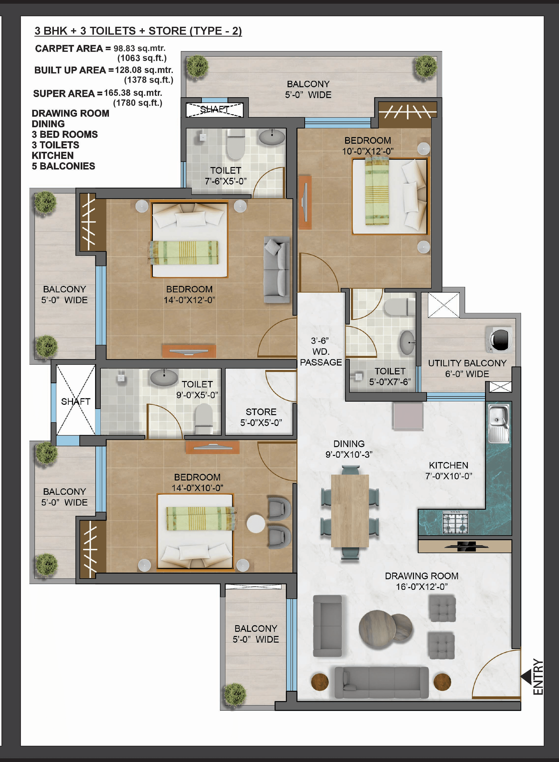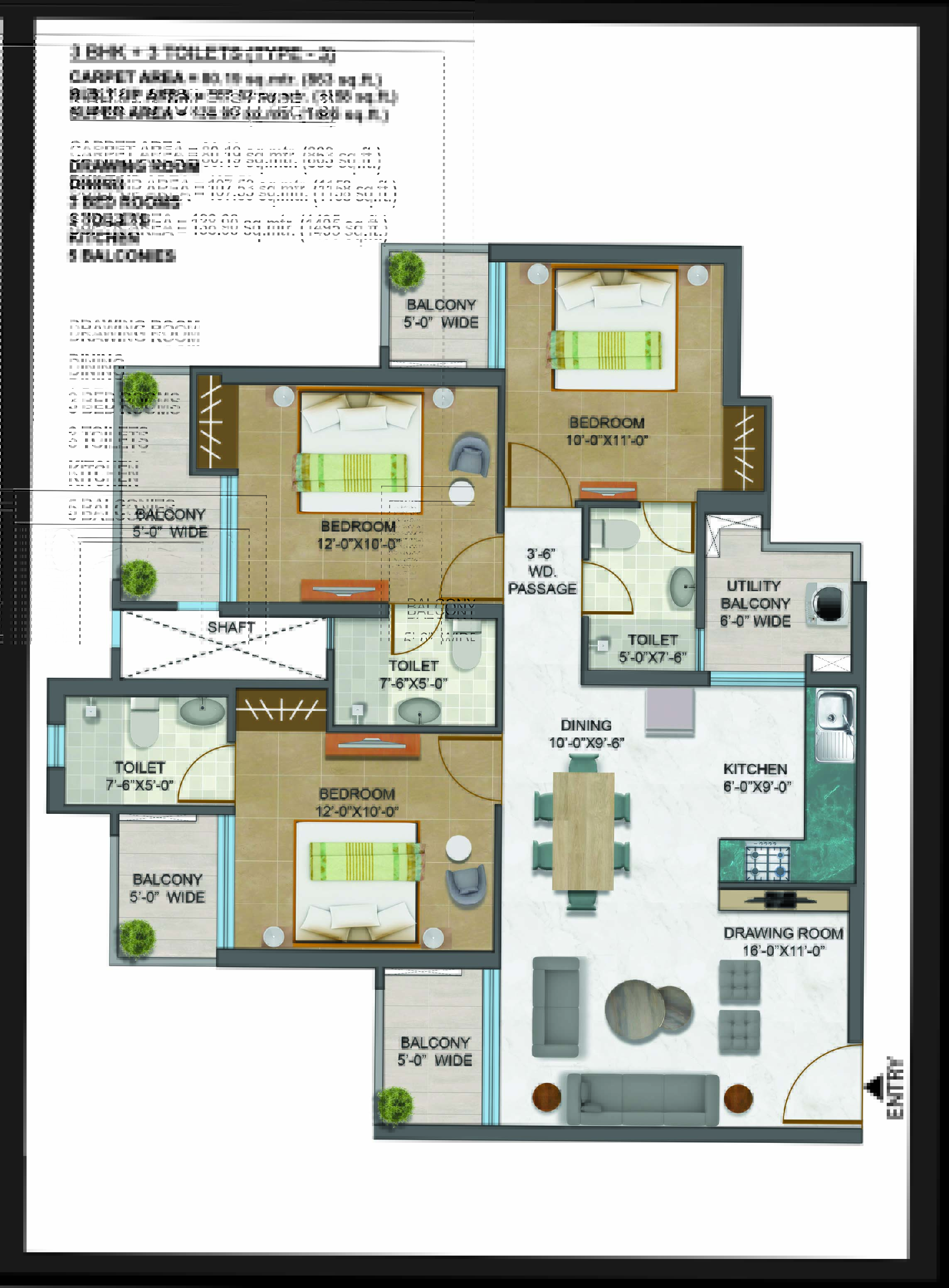 All 3 & 4 BHK apartments are 3 Side open ensuring good amount of sun light and ventilation. An earthquake resistant and vastu friendly project with all required safety measures for safety and longevity of its residents. The podium based construction offers more safety for kids and elderly as well as a smooth movement for vehicles.